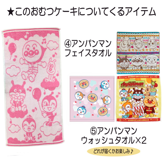 ●アンパンマンのぬいぐるみ×1 ●ドキンちゃんのぬいぐるみ×1 ●コキンちゃんのぬいぐるみ×1 ●アンパンマン ウォッシュタオル×2 ●アンパンマン フェイスタオル×1 ●パンパース テープSサイズ 40枚 or Mサイズ33枚 ●デザインギフトボックス ●メッセージカード ●ギフトラッピング |