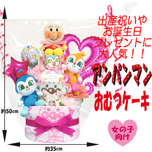 | 製品名: | アンパンマンとドキンちゃん・コキンちゃんの女の子用3段おむつケーキ anp4601 |