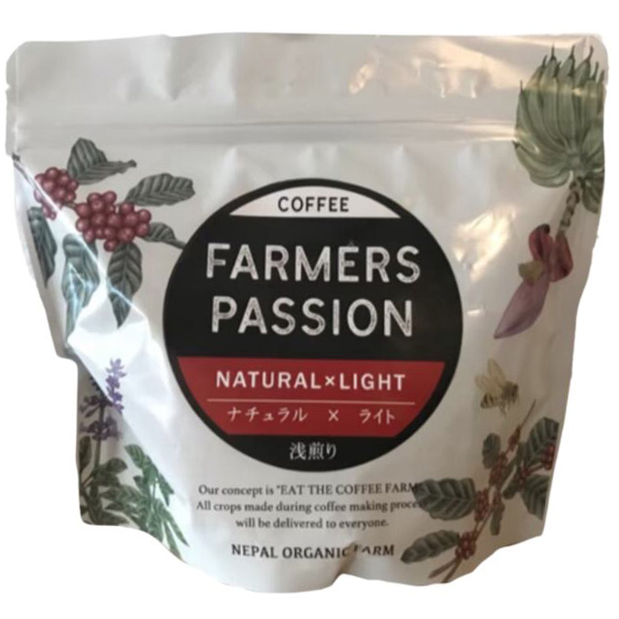 ■オーガニック & フェアトレード ネパールからの自家焙煎コーヒー FARMERS PASSION(ファーマーズパッション) 当店のコーヒーは、ネパール・シャンジャ地方の直営農園で、無農薬栽培で化学肥料を一切使わずに育てた 完全オーガニック/有機栽培のコーヒー豆を使用。自然本来の力を重んじた森林農法(アグロフォレストリー)によって、コーヒーの木だけでなくバナナやスパイスなど多様な植物と共存させることで、豊かな土地と生態系を守りながら丁寧に育てられています。 さらに、栽培から精製、焙煎、抽出に至るまで、すべてを自分たちの手で一貫管理。これにより、豆本来の風味を最大限に引き出すことに成功しています。