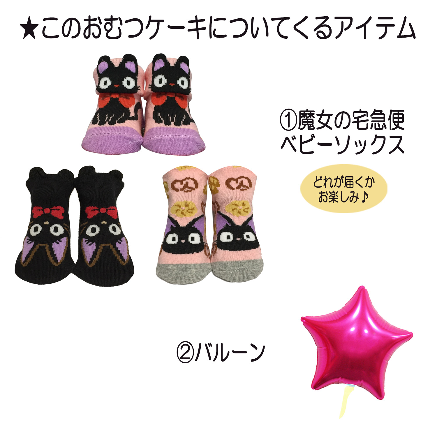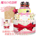 ■魔女の宅急便 ジジのおむつケーキ 女の子■ 赤ちゃんに大人気のジジのベビーソックスとフェイスタオル、ウォッシュタオルなどをセットに、1つ1つ丁寧に手作りされた豪華な2段のおむつケーキのギフトです♪土台に使用されているおむつは産婦人科使用率No.1のパンパースを衛生面に気を付けて1枚1枚袋入りになったおむつケーキになっております。全てのおむつケーキはギフト用にラッピングを施し、可愛いギフトボックスにお入れしてお送りいたします。おむつケーキは出産祝いはもちろん、内祝い、100日祝い、ハーフバースデー、初節句、お誕生日プレゼントにも大変喜ばれる贈り物です。 |
