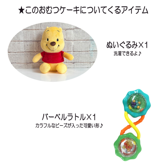●くまのプーさんのぬいぐるみ×1 ●くまのプーさん ウォッシュタオル×1 ●くまのプーさん フェイスタオル×1 ●おもちゃ×1 ●パンパース テープSサイズ 22枚 or Mサイズ 19枚 ●デザインギフトボックス ●メッセージカード ●ギフトラッピング |