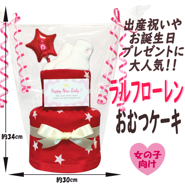 ラルフローレンのおむつケーキは、贈り物に喜ばれる人気のミニタオルとベビーソックスをセットに、バルーンと組み合わせて1つ1つ丁寧に手作りで制作された女の子向けのおむつケーキのギフトです♪出産祝いはもちろん、ハーフバースデー、1歳のお誕生日、ベビーシャワー、初節句、100日祝いなど、様々な場面で活躍する大人気のお祝いギフトです。