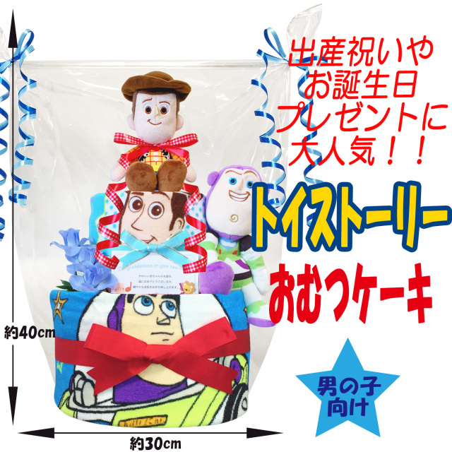■トイストーリーの2段おむつケーキ■ 赤ちゃんに大人気のトイストーリーのウッディとバズライトイヤーのぬいぐるみにフェイスタオルやウォッシュタオルなどをセットに、1つ1つ丁寧に手作りされた豪華な2段のおむつケーキのギフトです♪土台に使用されているおむつは産婦人科使用率No.1のパンパースを衛生面に気を付けて1枚1枚袋入りになったおむつケーキになっております。全てのおむつケーキはギフト用にラッピングを施し、可愛いギフトボックスにお入れしてお送りいたします。おむつケーキは出産祝いはもちろん、内祝い、100日祝い、ハーフバースデー、初節句、お誕生日プレゼントにも大変喜ばれる贈り物です。 |